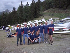 Heute ist Donnerstag, der 17. Juni 2004. Wir sind in der zweiten Woche der WM und haben bereits 6 wunderschöne Flugtage erlebt. Es sind hier 80 Teilnehmer aus 15 Nationen am Start, die sich in drei verschiedenen Geräteklassen messen. Ich bin die einzige weibliche Teilnehmerin bei den Starrflüglern. Wir hatten teilweise hervorragende Streckenflugbedingungen mit einer Wolkenbasis bis auf 4.300 Meter. Dreimal wurden Strecken über 200 km angesetzt. Bei mir lief es bisher sehr gut (für meine Verhältnisse). Zweimal habe ich es geschafft, die Aufgabe zu beenden und bin nach 135 und 155 Kilometern ins Ziel gesegelt. Aber auch die anderen Flüge waren faszinierend - ich bin total happy. An einem so hochkarätigen Wettbewerb mit solch internationalem Umfeld teilzunehmen, ist für mich völlig neu und ich bin insgesamt tief beeindruckt.